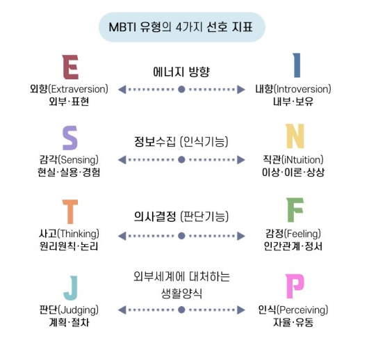 심리학은 “서로의 부족함을 채우는 관계”가 가장 오래 지속된다고 말합니다. MBTI 궁합 역시 이 원리를 바탕으로 합니다. MBTI는 네 가지 축인 에너지 방향(E/I), 정보 인식(S/N), 의사결정(T/F), 생활 태도(J/P)의 조합을 통해 16가지 성격유형이 만들어집니다.
