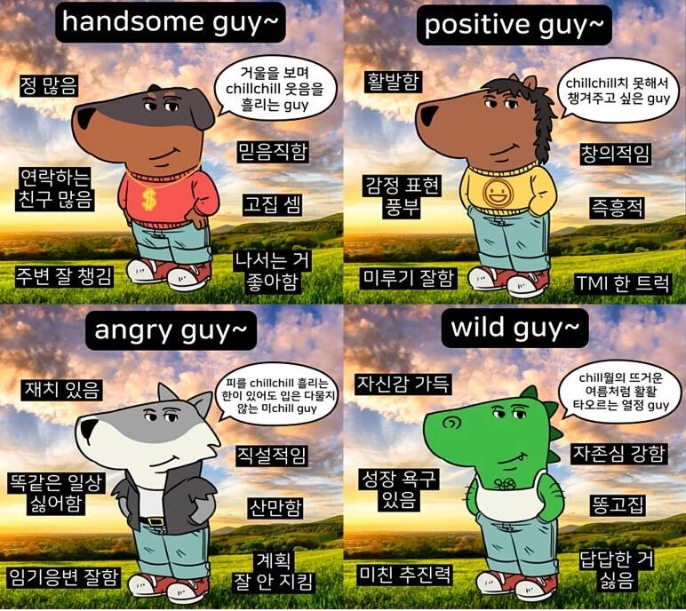 | trendy guy | ESFP | 감각적이고 분위기를 주도함 |