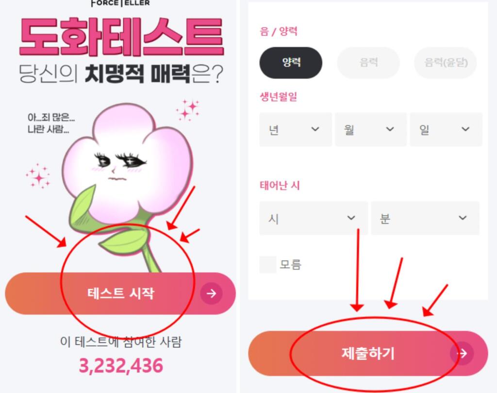 오늘 나의 도화살 숫자와 그 매력을 충분히 활용할 수 있는 방법에 대해 재밌는 테스트를 진행해보세요.